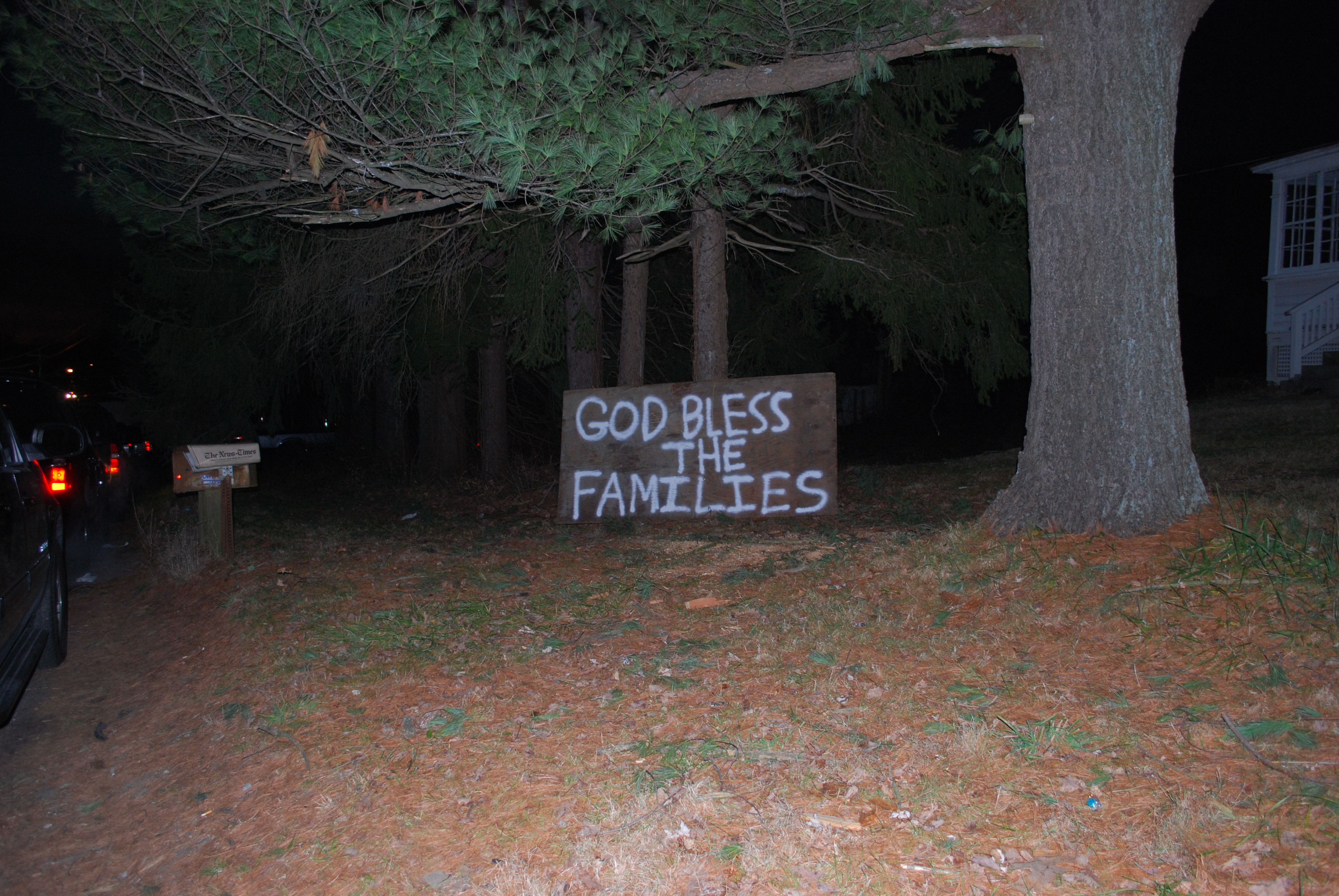 Candlelight vigils and packed prayer services sprung up at neighborhood churches Friday evening to honor the 20 schoolchildren and six adults gunned down earlier that morning at Sandy Hook Elementary School.
